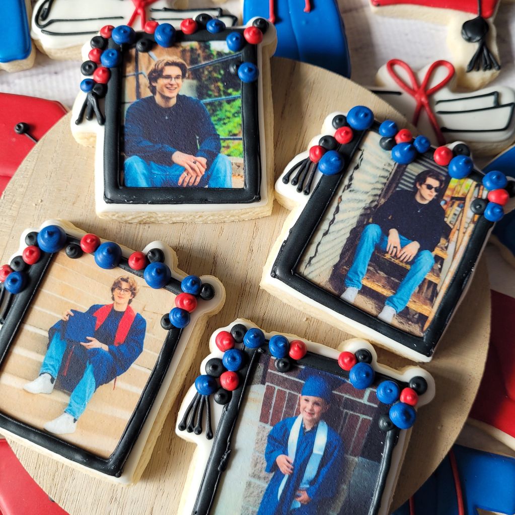 Any design is doable on a cookie. Pictured: Custom graduation cookies with an edible image.